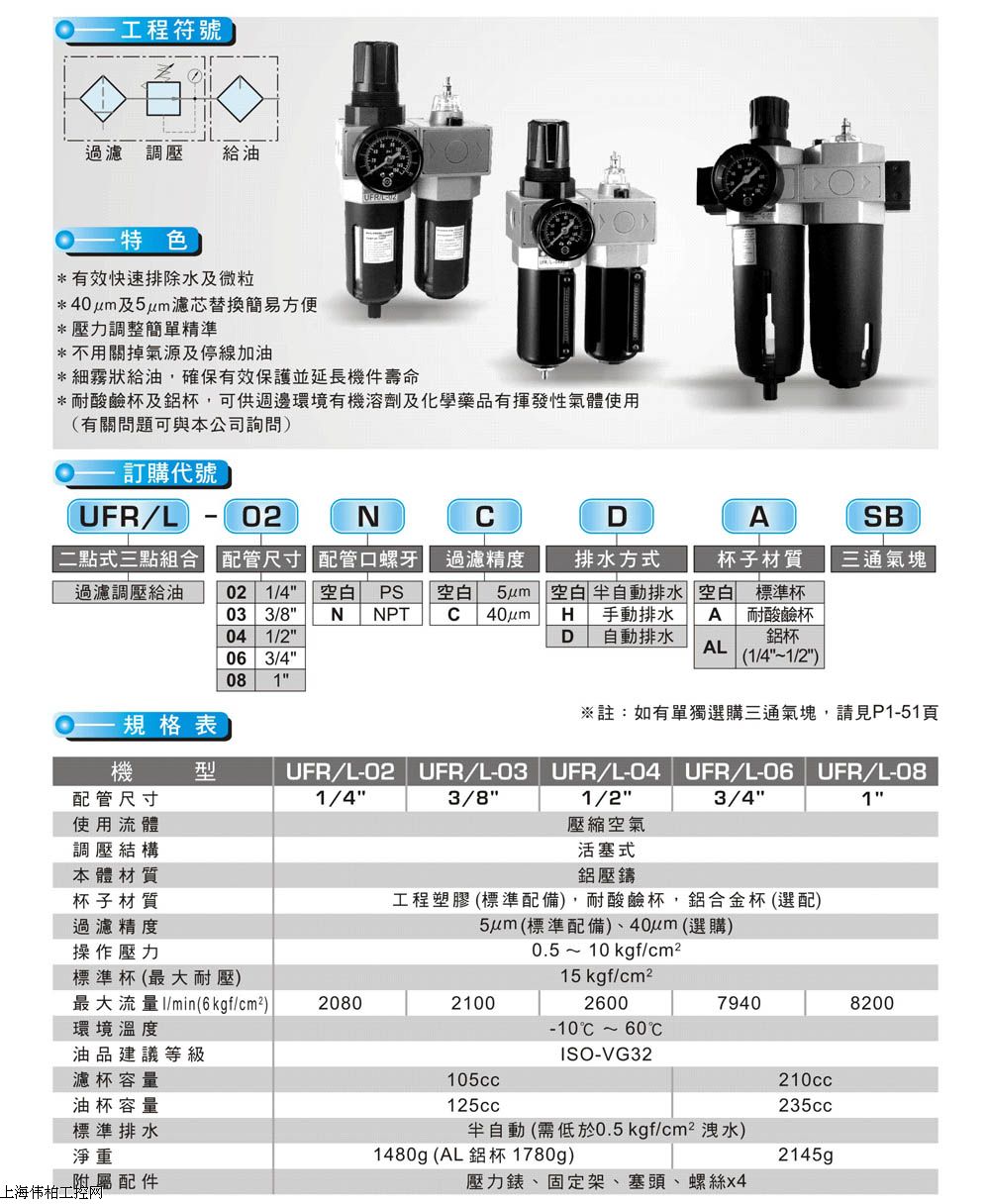 | 产品标题:UFR/L-02,03,04,06,08|新恭shako|二點式三點組合|价格|参数|资料|-中国伟柏 产品ID:VIB20090706124818734 品 牌:SHAKO新恭气动 所在地:中国 台湾 价 格:面议 (大量采购价格面议) 库存状态:货期待查 更新日期:2025-9-11 4:52:04 咨询电话:(+86)021-51699285 咨询Q Q: 2695337323 |